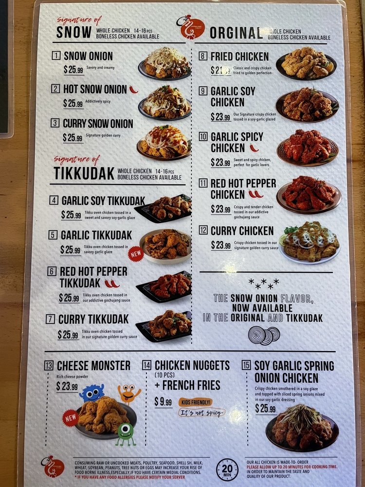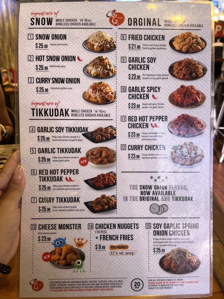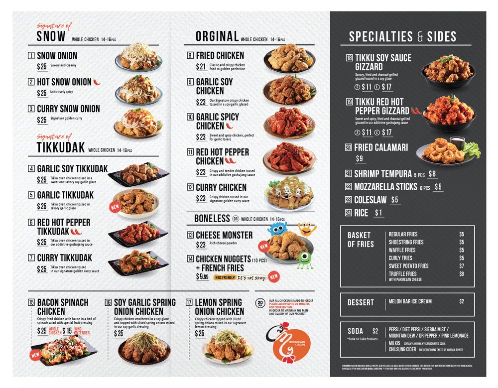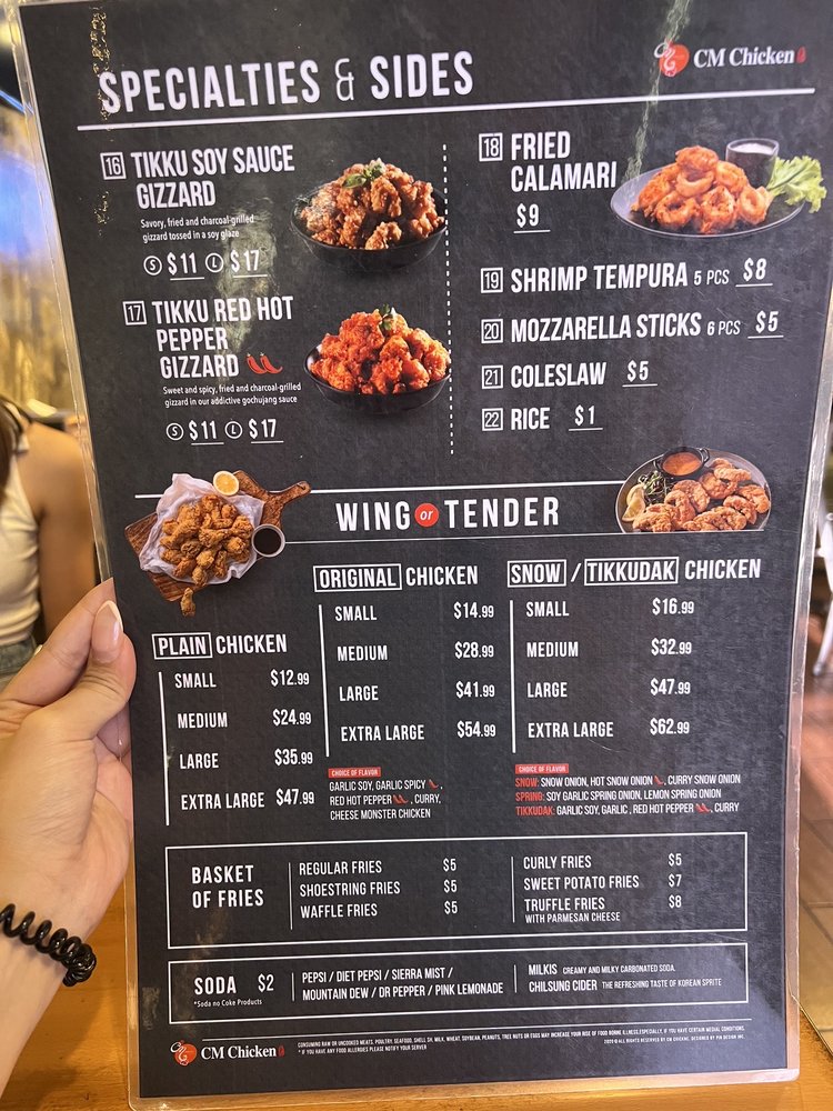Introducing the menu at CM Chicken Carrollton, a Korean-Asian fusion chicken shop located in Carrollton, TX. This Asian-owned establishment offers a plethora of amenities such as wheelchair accessibility, delivery, and outdoor seating. Their menu boasts unique dishes like Soy Sauce Gizzard, Spring Onion Chicken, and Curry Tikkudak Wings. Customers rave about the crispy and flavorful chicken, with highlights including the smoky and crispy Tikkudak and addictively delicious Spring Onion Chicken. The garlic spicy chicken has a perfect balance of heat and flavor, while the sweet potato fries and waffle fries complement the dishes well. Service is fast, prices are reasonable, and portion sizes are satisfying. For a refreshing take on Korean fried chicken with inventive flavors, CM Chicken Carrollton is a must-try destination.
